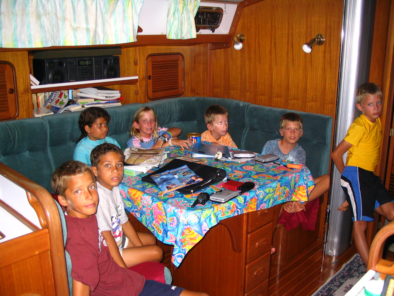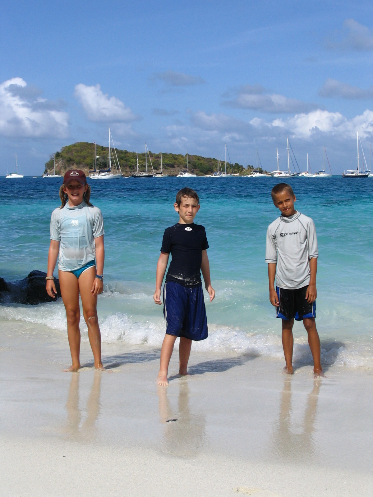 We ended up in a great spot off of Petit Bateau. Interestingly we had a couple of boats next to us that had sailed down from Norfolk in the rally in November. The number of boats from the U.S. cruising full time in the Caribbean is relatively small and we saw the same boats in many of the anchorages. After the Tobago Cays, we sailed up to Canouan and spent the night there. Entering the harbor we sailed into the strongest squall we have experienced yet while in the Caribbean. The wind gusted to 30 knots, driving rain, and no visibility. Fortunately, it did not last long. After a night in Canouan, we sailed back to Bequia where Austin headed back to Texas. While Austin was with us, we were probably the only small boat in the Eastern Caribbean with 4 ten-year old kids on board.