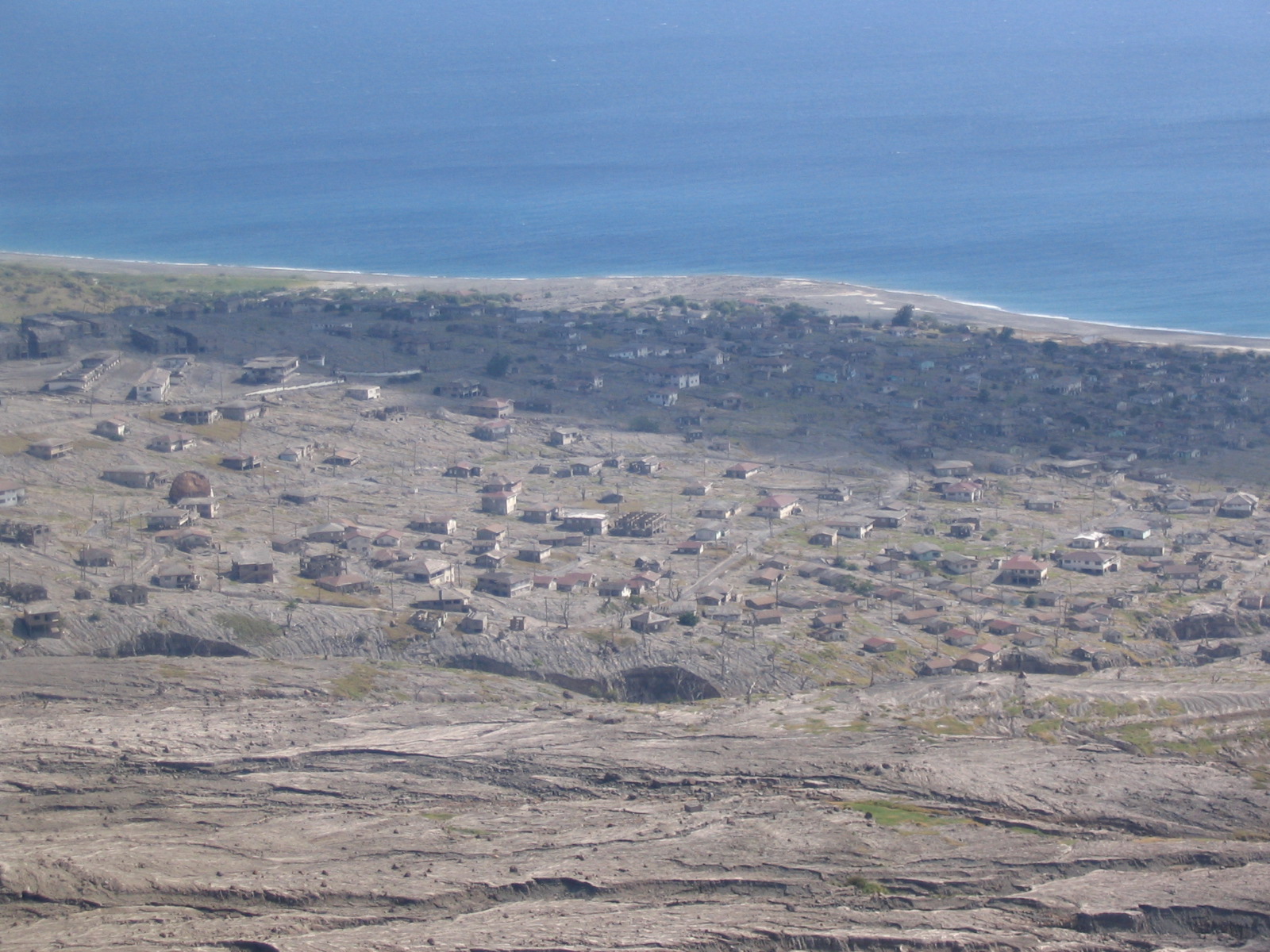 The volcano has continued to erupt with varying levels of intensity. In response to the initial series of eruptions, the British government tried to incent the Montserratians to move to London. They were hoping to remove everyone from the island and close it. They offered monetary rewards to families to resettle in London. Many folks left but about 4000 stayed and moved to the northern tip of the island, which was relatively free from the effects of the eruption. The southern part of the island is called the Exclusion Zone. We took a tour of the Exclusion Zone with a local guy whose house was covered by ash and lava. Everything in the Exclusion Zone looks like it did before the eruptions began. The buildings remain mostly undisturbed except that they are partially filled with mud and ash from the pyroclastic flow.